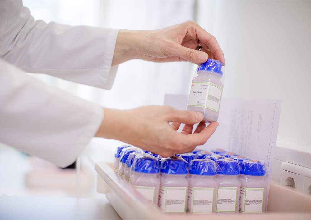 Instead of industrial production, we offer custom contract filling of liquid chemical and medical solutions and pastes in your required batch size, even (or especially) for small to medium quantities. We fill glass or plastic jars, jerrycan containers, cans, bottles and syringes ranging in size from 10 ml to 25 l as per customer requirements. We can also fill 1 ml and other intermediate size containers. We can also realise one-off promotional products for you and help you meet short-term spikes in demand.