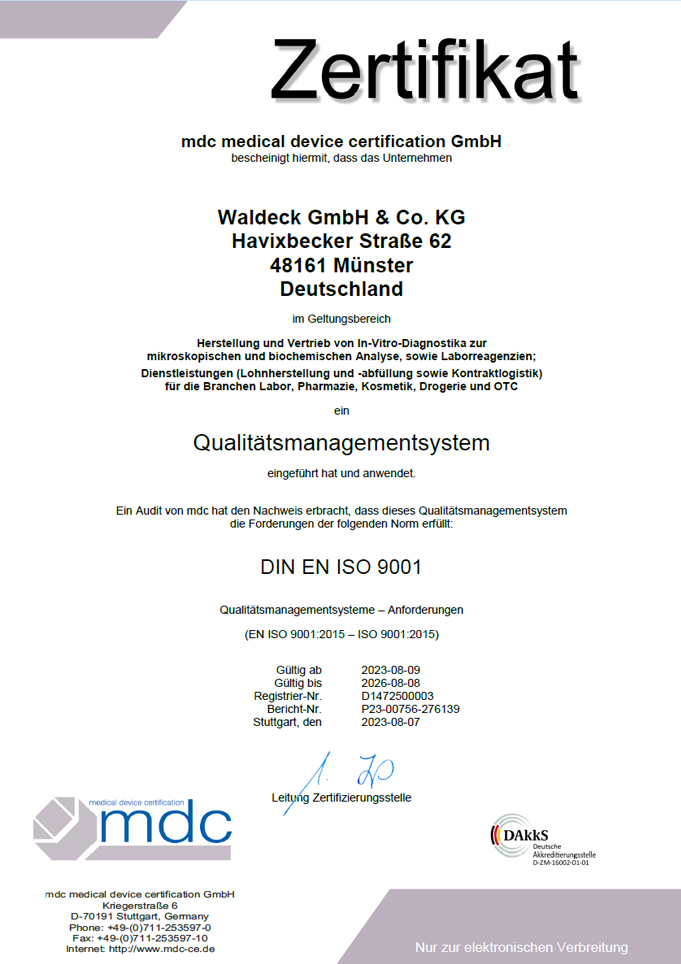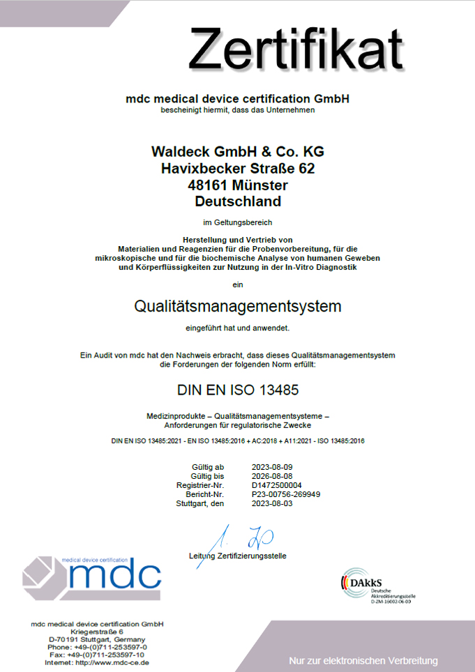 Regelmäßiges zertifizieren unseres Tun schafft Vertrauen. Von uns zu unseren Lieferanten, von unseren Partnern zu uns. So sind wir bereits seit 1995 nach DIN EN ISO 9001 ff. und seit 2011 DIN EN ISO 13485 zertifiziert.